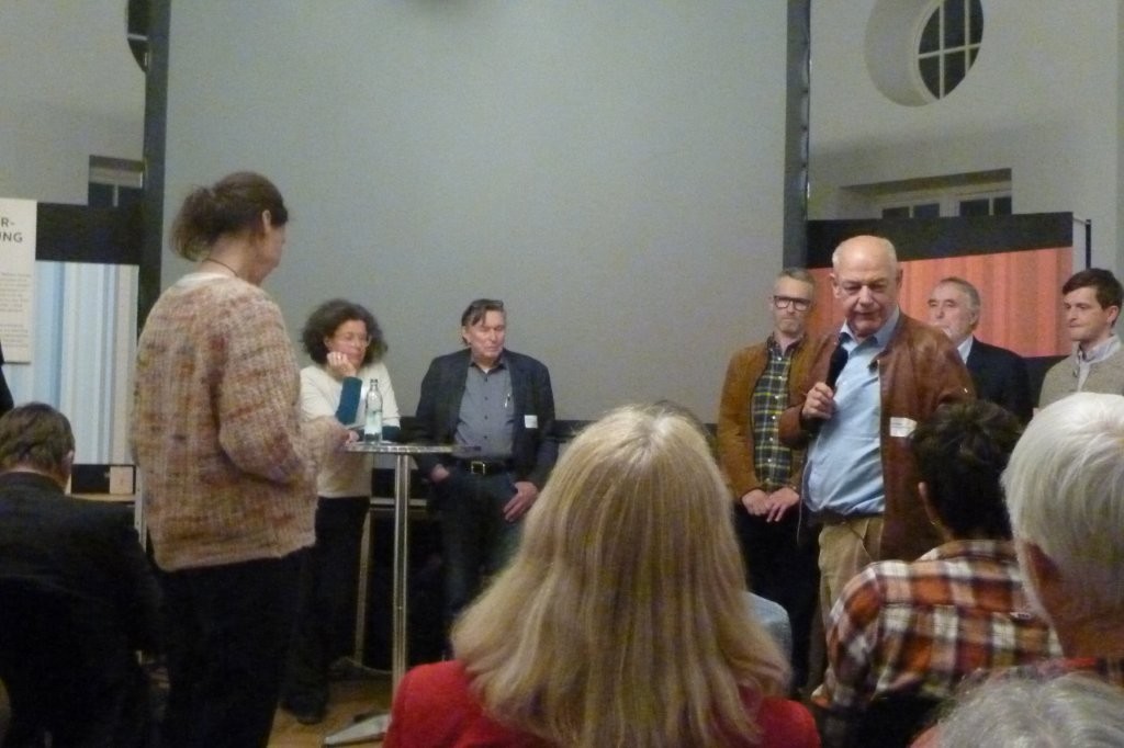 Den Referaten schloss sich ein Podiumsgespräch an, das dann auf das ganze Publikum erweitert wurde. Das Podium war paritätisch besetzt: Max Seidl (Komoot) und Thorsten Unseld (Digitize the Planet) vertraten die Sache der Digitalen Orientierung im Raum, Margarete Moulin (Journalistin) und Rudi Erlacher (VzSB) standen für die Gegenposition. Sie wollten insbesondere die Folgen der Zuckerbergwelt für die Bergkultur diskutieren. Roland Stierle (Präsident des DAV) und Dr. Uta Eser (Umweltethikerin) nahmen eher vermittelnde Positionen ein.