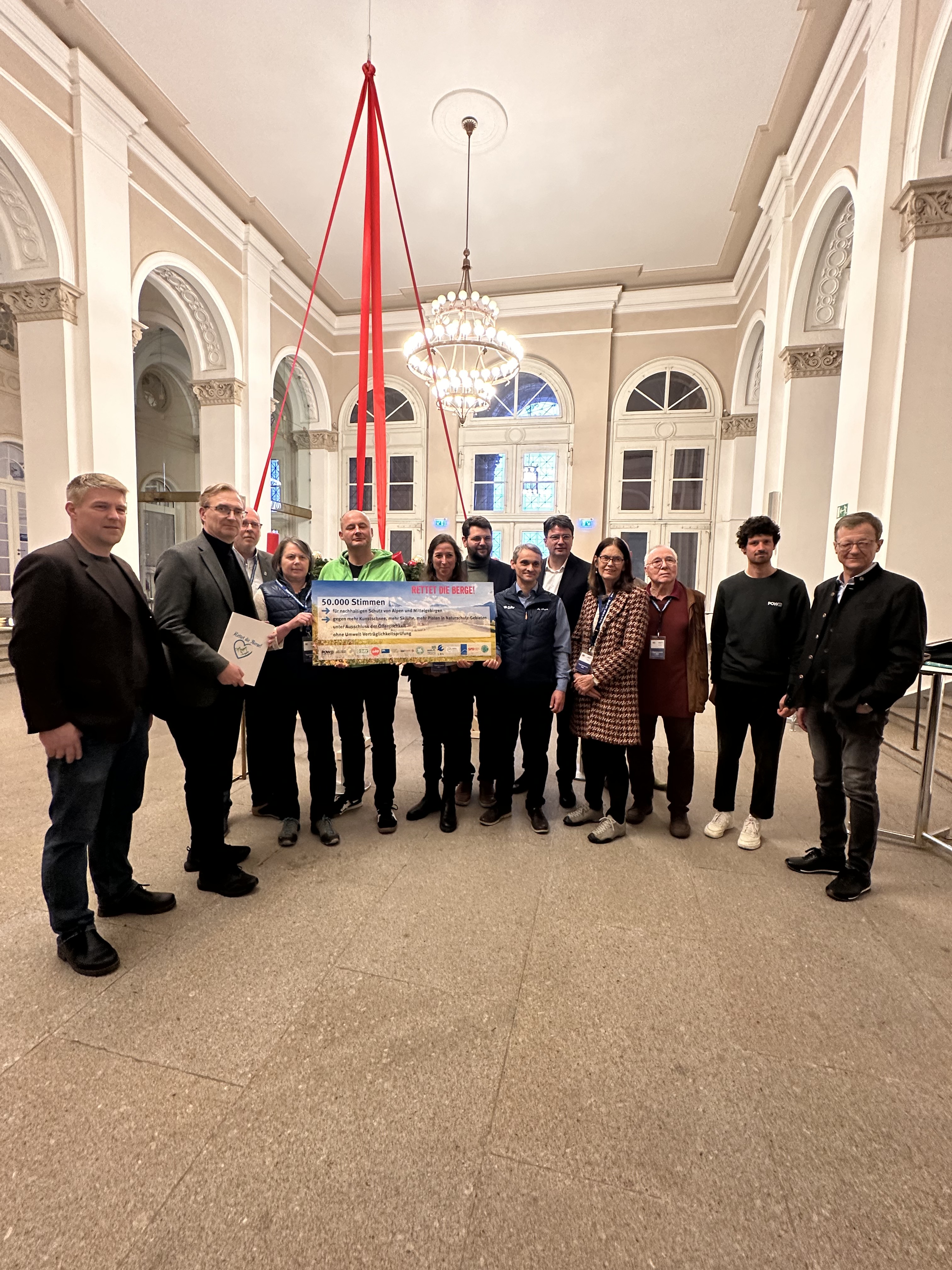 (Update vom 11.12.2025) Knapp 50.000 Bürgerinnen und Bürger unterzeichneten im Sommer 2025 die Resolution "Rettet die Berge - kein Rückschritt beim Alpenschutz". Heute, am Internationalen Tag der Berge, überreichten die beteiligten Verbände die Unterschriften an MdL Alexander Flierl, den Vorsitzenden des Ausschusses für Umwelt und Verbraucherschutz im Bayerischen Landtag .Durch die Übergabe der Resolution „Rettet die Berge – kein Rückschritt beim Alpenschutz“ in Form einer Petition an den Bayerischen Landtag wollen die in der CIPRA Deutschland organisierten Verbände erreichen, dass sich der Bayerische Landtag erneut mit dem Alpenschutz beschäftigt und die Abschwächungen bei den Umweltverträglichkeitsprüfungen durch das Dritte Modernierungsgesetz wieder zurücknimmt.