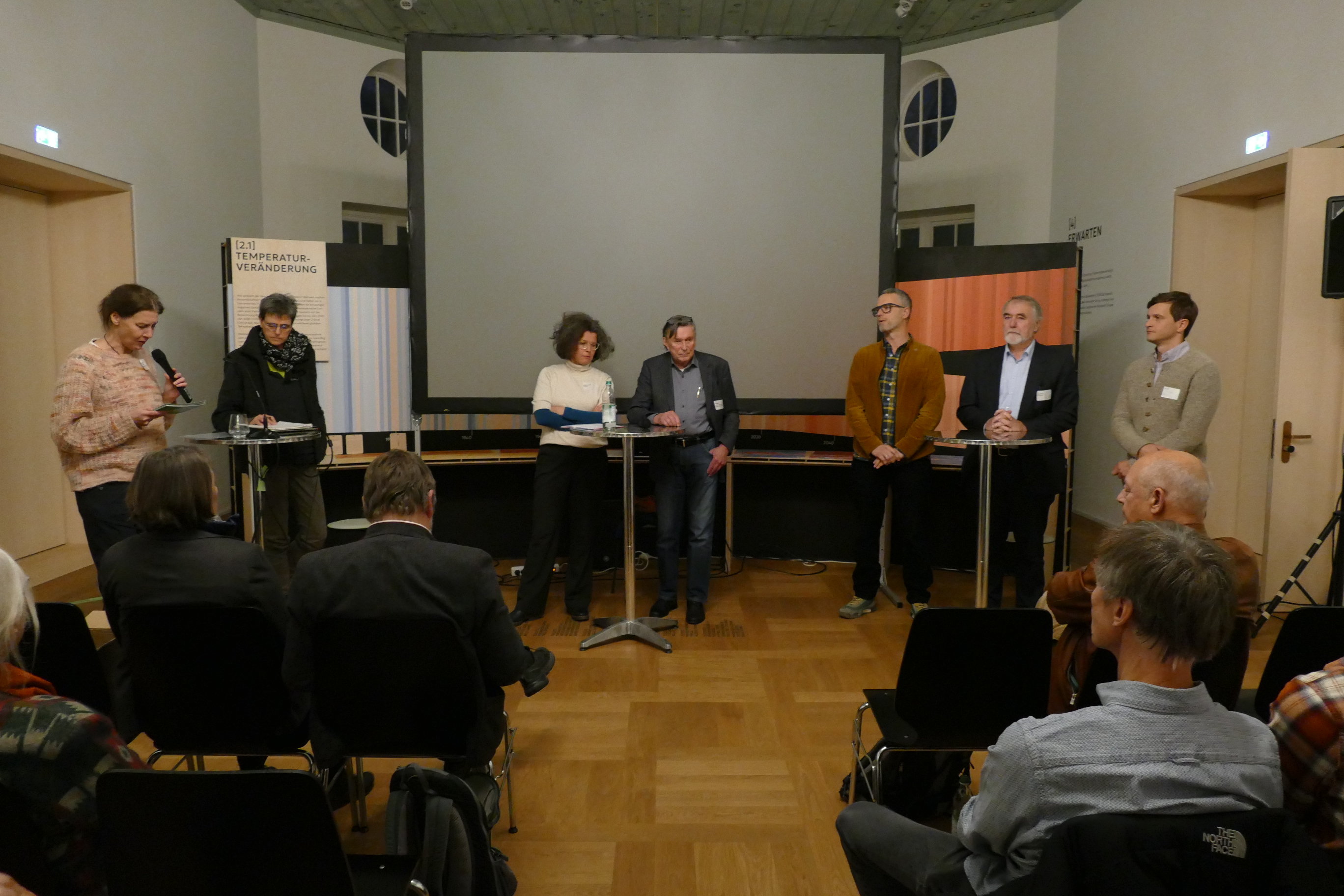 Die Moderation von Symposium und Podiumsdiskussion übernahm Christine Frühholz, Leiterin des DAV Ressorts Redaktion, ebenso die Eröffnung des Symposiums. Dr. Sabine Rösler, Erste Vorsitzende des Vereins zum Schutz der Bergwelt, begrüßte die Ehrengäste und Teilnehmenden der Jubiläumsveranstaltung und spannte in ihrem Rückblick den Bogen von der Vereinsgründung im Jahr 1900 bis hin zu den aktuellen Herausforderungen für den VzSB. Axel Doering, Präsident der CIPRA Deutschland, erinnerte in seinem Grußwort an die Grassauer Gespräche "Die mediale Erschließung der Alpen" im Jahr 2023, die von CIPRA-D initiiert wurden und inhaltlich diesem Symposium vorangingen. Wolfgang Arnoldt, DAV-Vizepräsident, schilderte in seinem Grußwort die Transformation der DAV-Kartographie: eine geringere Nachfrage nach gedruckten Karten und eine steigende Nutzung digitaler Plattformen für die Navigation.